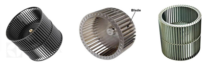 Figure 1 – Centrifugal Fan The blades of a centrifugal fan are fully enclosed in air tight housing. This housing keeps any dust or fumes from leaking out into the building. If you look inside the housing you will see that the moving part, known as the impeller, resembles a squirrel cage. Few types shown below.